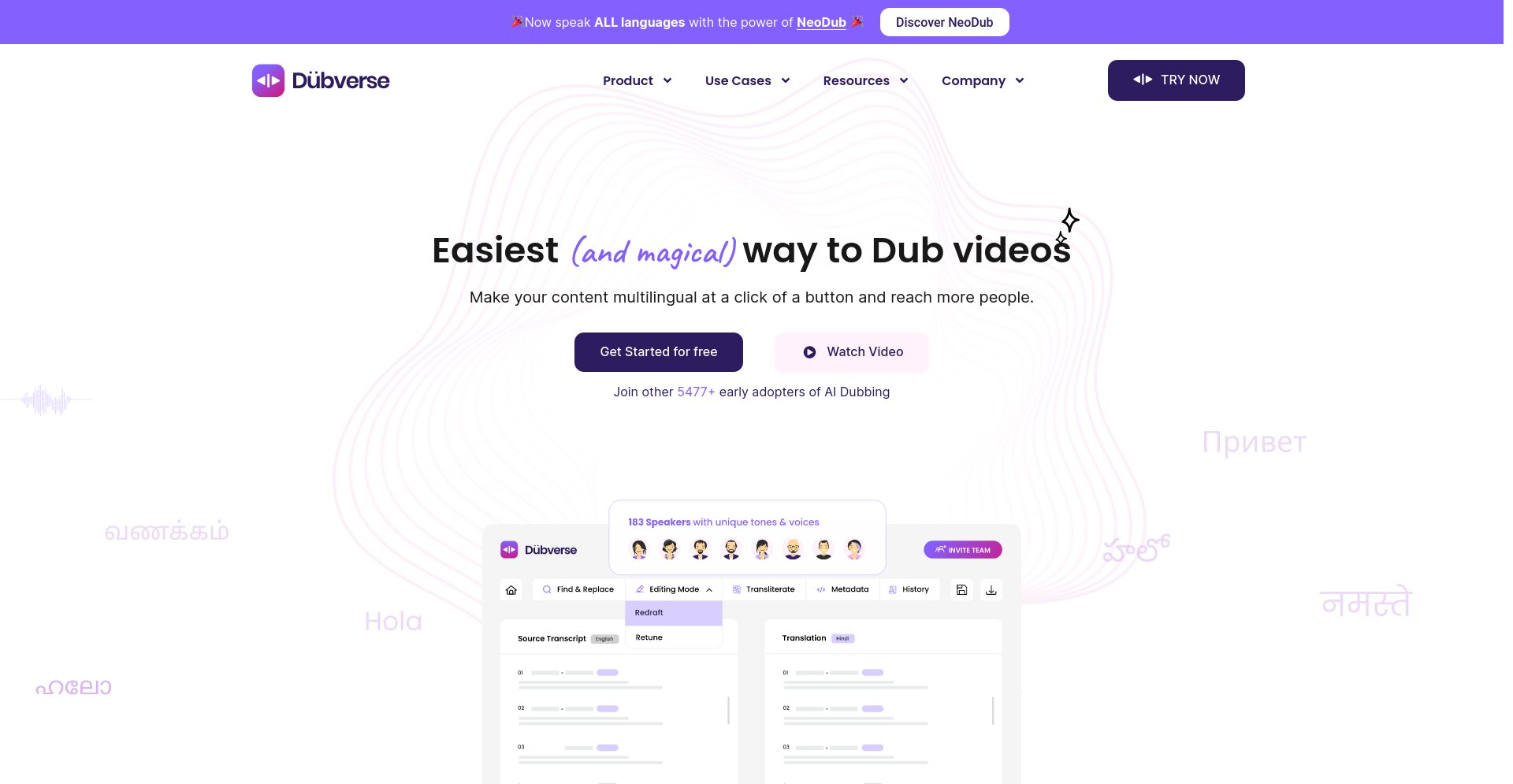 Dubverse ermöglicht es, Sprachausgabe in verschiedenen Sprachen und Akzenten zu erstellen.